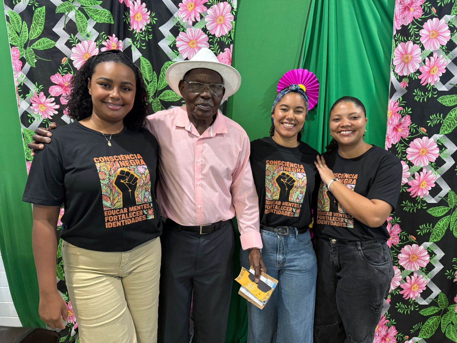 ES-JAGUARÉ: A Escola Municipal de Ensino Fundamental Marciano Altoé realizou uma semana espacial dedicada ao resgate, trabalho e promoção da Cultura Negra. Os trabalhos envolveram os aproximadamente 300 estudantes em oficinas, confecção de cartazes, danças, teatros, poesias e testemunhos com personalidades de representatividade dos afrodescendentes, e da resistência quilombola. A culminância do projeto aconteceu na quarta-feira, 19.11.2025, quando os estudantes de Jaguaré conheceram e prestaram homenagem à Luiz Geraldino, representante vivo dos criadores do forró-pé-de-serra de Itaúnas.