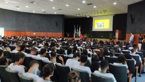 Jacqueline Moraes falou para uma plateia de quase 500 alunos que lotou o auditório do Ifes, em Alegre. Diversos alunos e alunas fizeram perguntas sobre o tema o que gerou uma discussão muito produtiva.