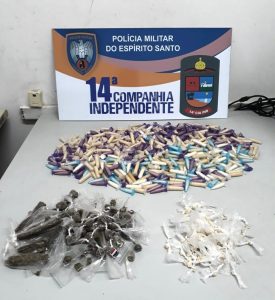 ES: Na tarde dessa quinta-feira (26), policiais militares da 14ª Companhia Independente apreenderam 690 pedras de cocaína, 134 pedras de crack e 114 buchas de maconha, em uma área de mata no bairro Vila Nova de Colares, Serra. A ação contou com o apoio dos cães Airo e Jade da Companhia Independente de Operações com Cães (CIOC). Ninguém foi detido.