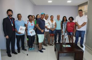 Reunidos no Gabinete do prefeito em exercício, Elder Sossai, os sete moradores receberam das mãos do prefeito, do secretário de Planejamento urbano e do representante da Caixa Econômica Federal, Douglas Rossi, o documento definitivo de posse de suas casas.