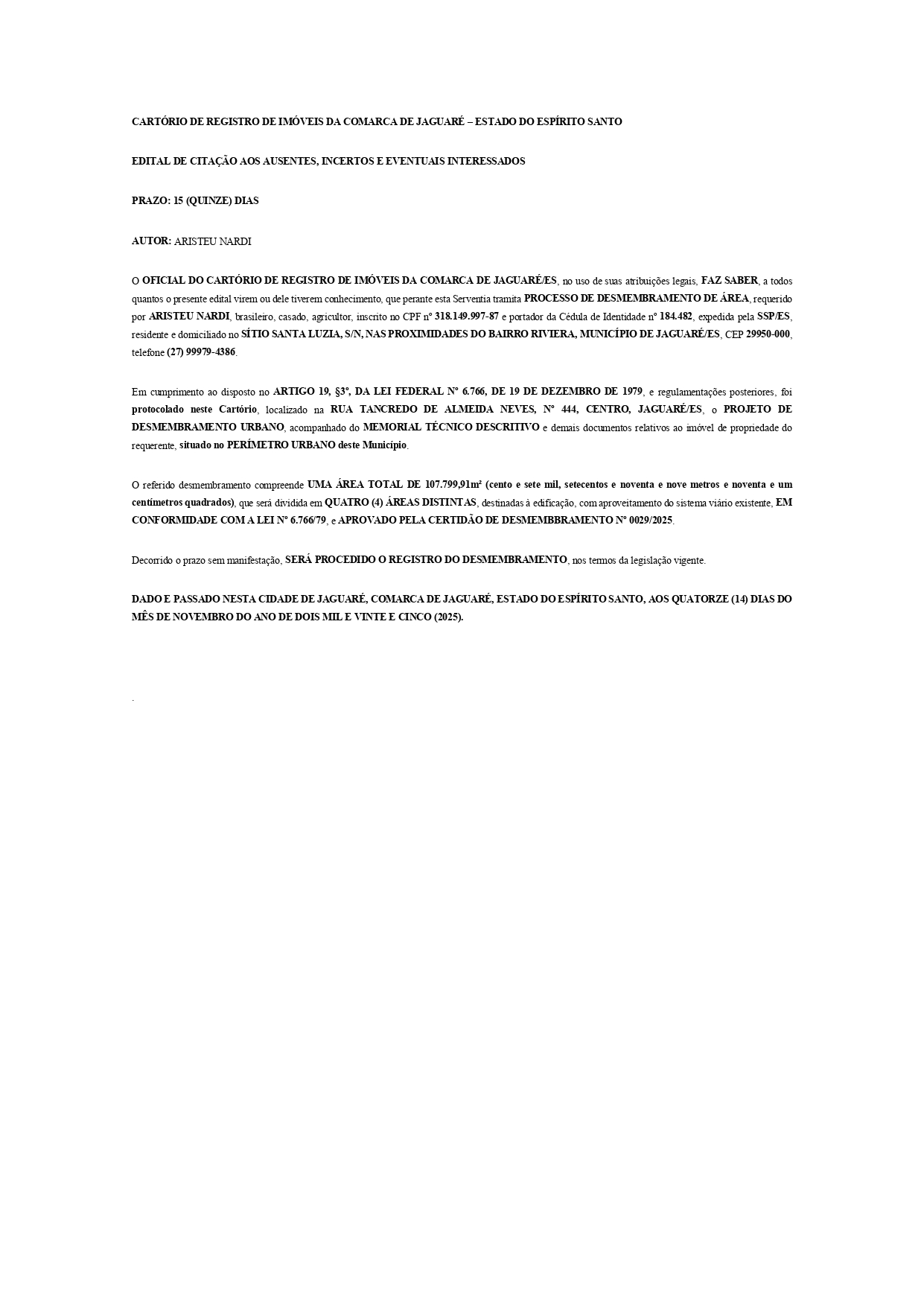 Publicação de Edital 23.11.2025